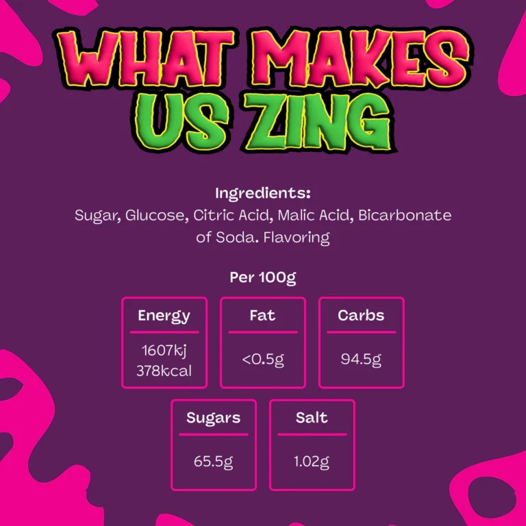 Sugar, Glucose,Citric Acid, Malic Acid, Bicarbonate of Soda, Flavouring. No added colour.